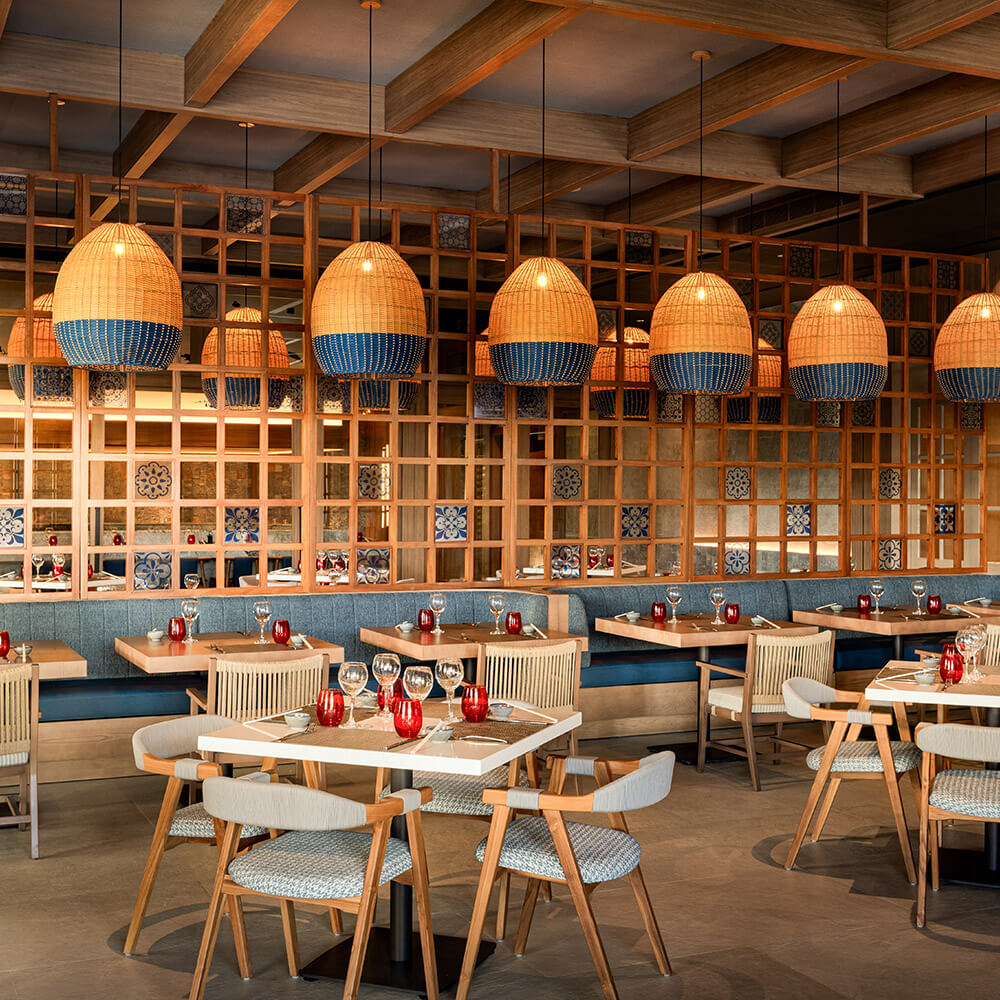 El resort está equipado con un moderno Centro de Convenciones con capacidad para 800 personas, ideal para eventos y reuniones. Los huéspedes disfrutarán de una experiencia de primer nivel con tres elegantes piscinas, un relajante spa, un gimnasio bien equipado y siete bares, entre ellos un moderno sport bar contemporáneo. La oferta gastronómica es igualmente destacable, con nueve restaurantes gourmet a la carta, como el mediterráneo Meraki, el elegante Portofino y el sabroso Tierra, entre otros.